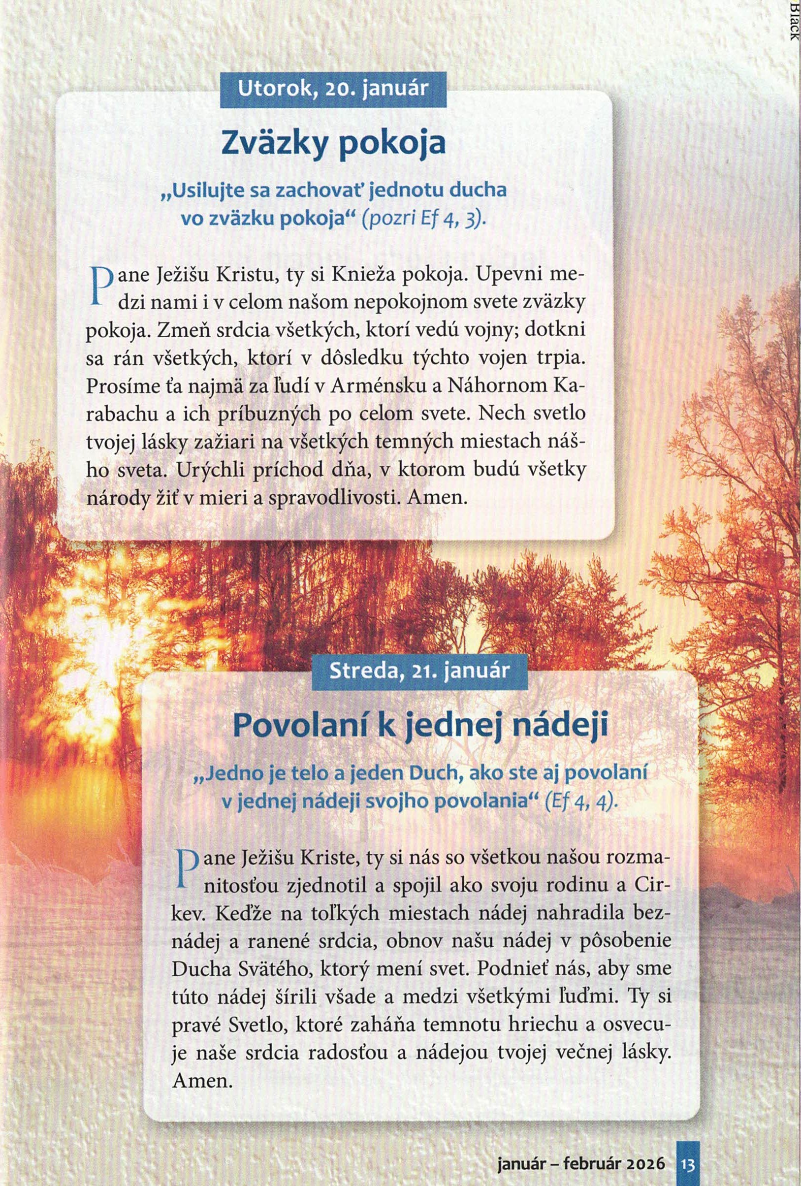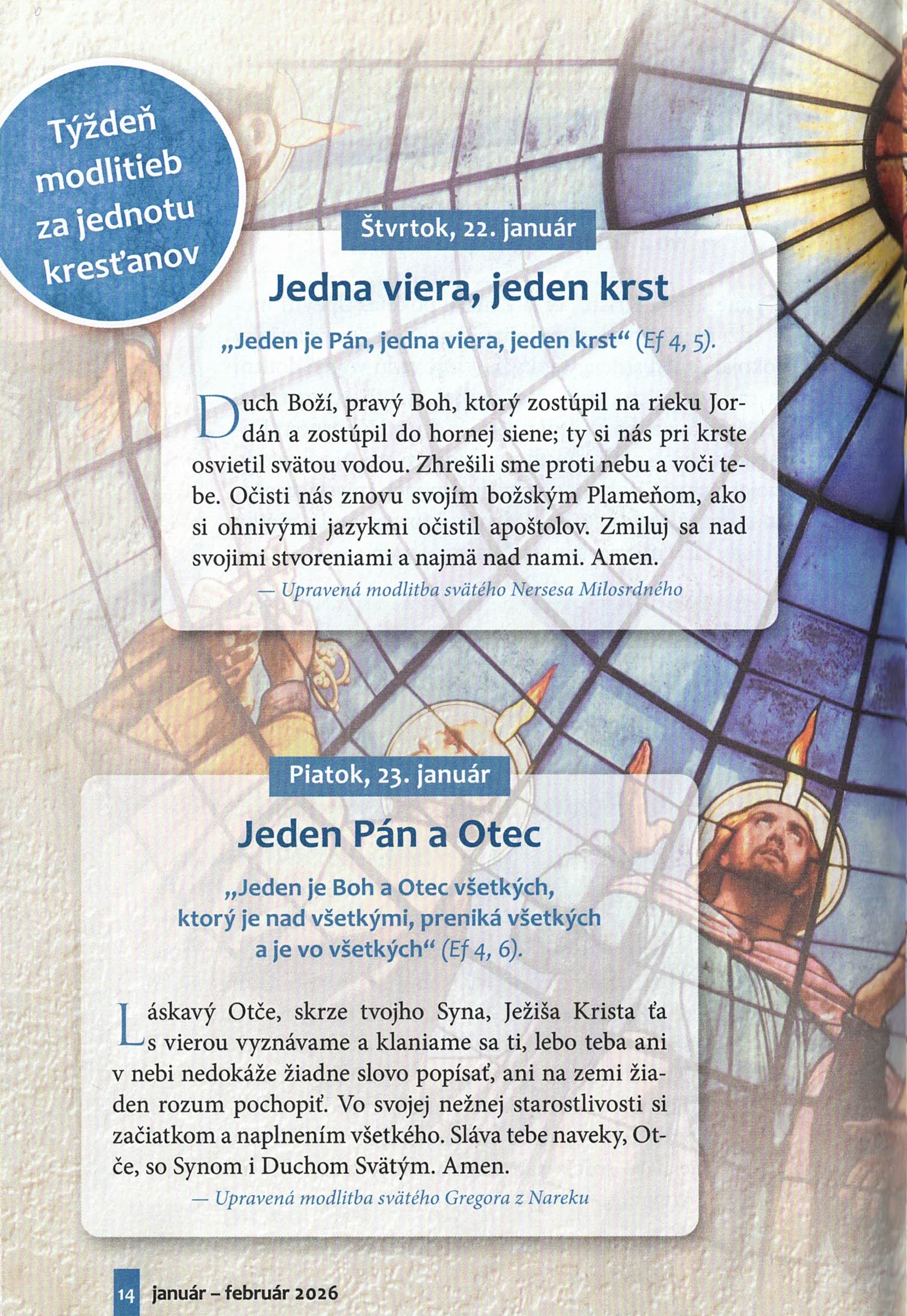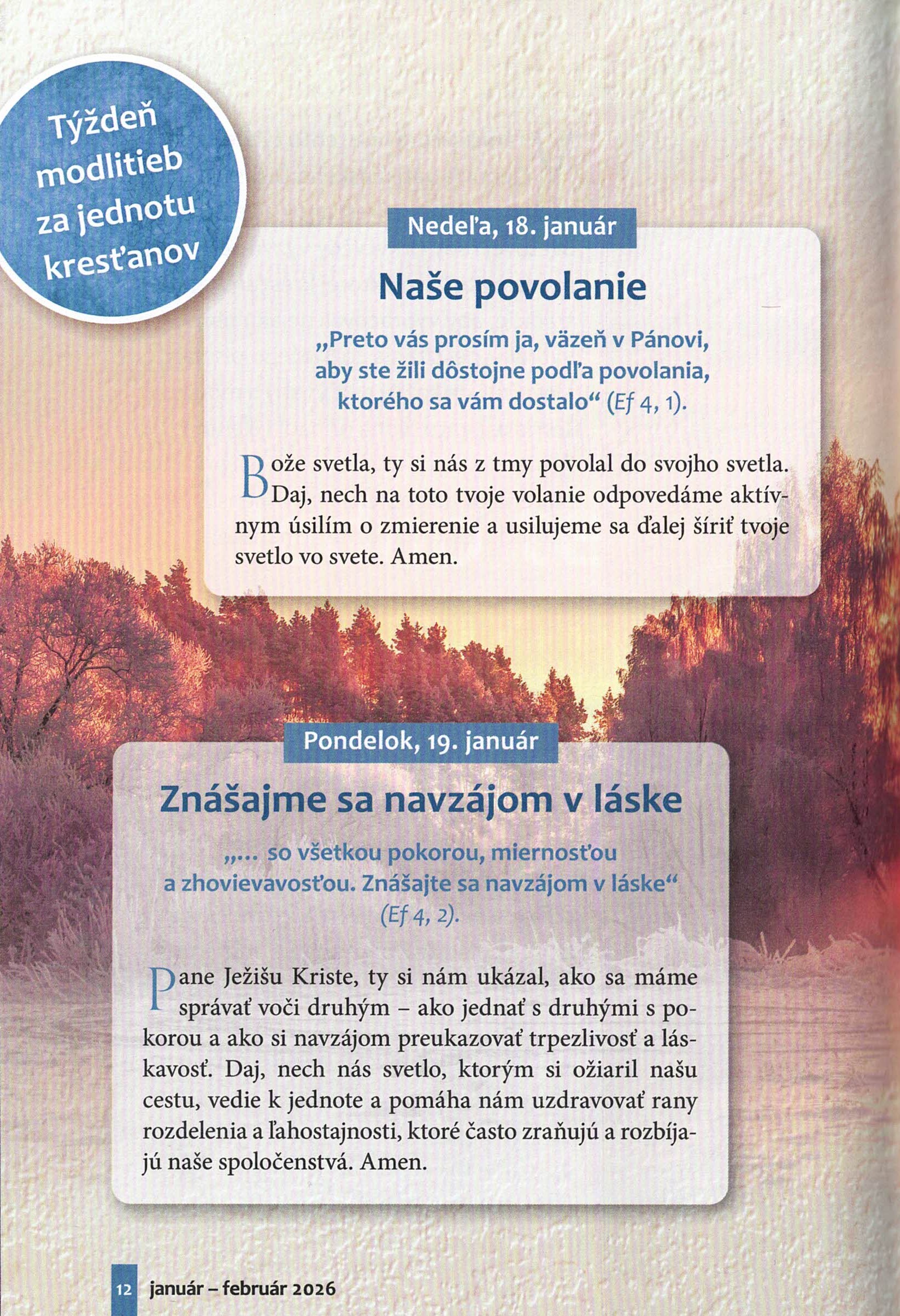 Modlitby na každý deň Týždňa modlitieb za jednotu kresťanov (18.-25.1.) z časopisu Slovo medzi nami