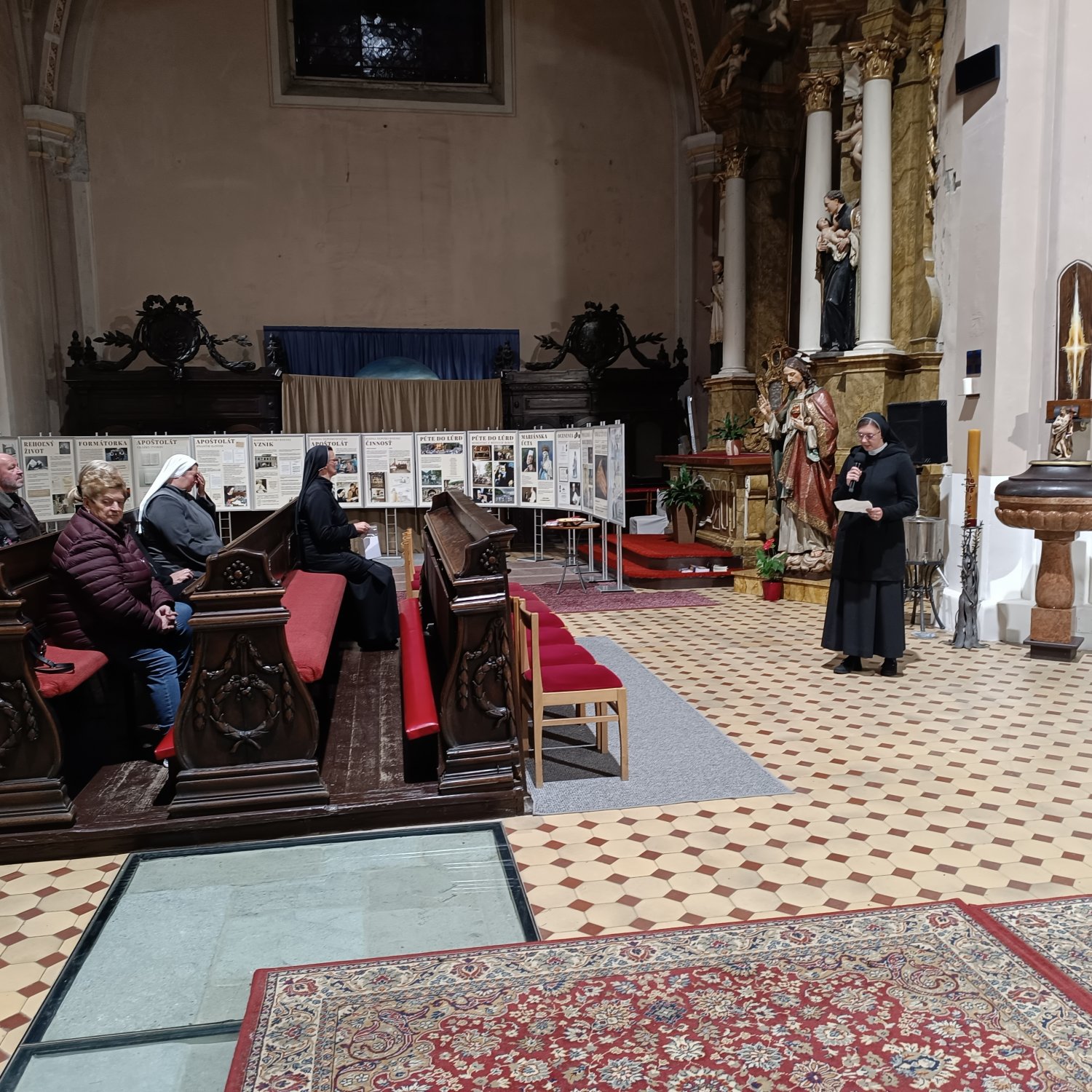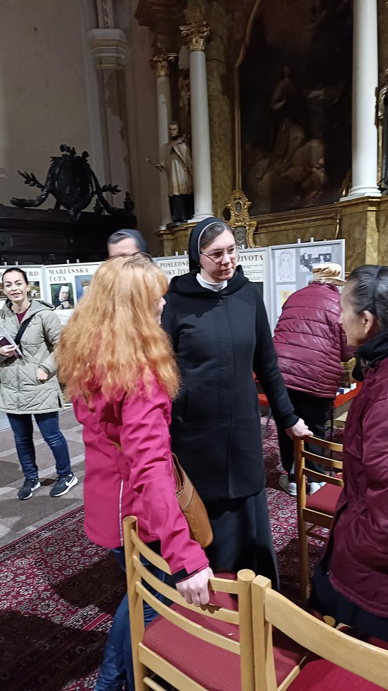 V pondelok 6.10.2025 sa po večernej svätej omši v našom kostole Nanebovzatia P. Márie uskutočnila panelová výstava o sestre Bernadete Pánčiovej z Kongregácie Milosrdných sestier sv. Vincenta - Satmárok, ktorá založila modlitbové spoločenstvo Rodiny Nepoškvrnenej. Výstavu krátko komentovali prítomné sestry Satmárky: sr. Belarmína a sr. Viannea, ktorá je postulátorkou procesu blahorečenia sr. Bernadety. Počas rozhovorov pri vernisáži si viacerí farníci zaspomínali na návštevy sr. Bernadety v Banskej Štiavnici koncom 20.storočia, a to na Kalvárii či v našom farskom kostole. Výstavu si môžete pozrieť do 20.10.2025, kedy bude „putovať“ do ďalšej farnosti.
